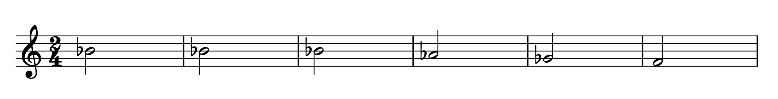 Další nástup tématu je ve třetím taktu od tónu f, jde tedy o interval čisté kvinty a objevuje se v druhém hlase. Téma se dále objevuje ve třetím hlase v 9. taktu od tónu c. Čtvrté opakování tématu je opět ve třetím hlase, a to od tónu G (takt 13). Páté opakování nastupuje v 19. taktu od tónu d1 a poslední, šestý nástup tématu fugy je v 23. taktu od tónu a1. Opět nedochází k rozšíření počtu hlasů. Všechna dosavadní opakování tématu jsou podřízena přísnému dodržování intervalových vztahů všech tónů tématu. Precisnost je i v intervalu nástupu tématu, kterým je vždy čistá kvinta.